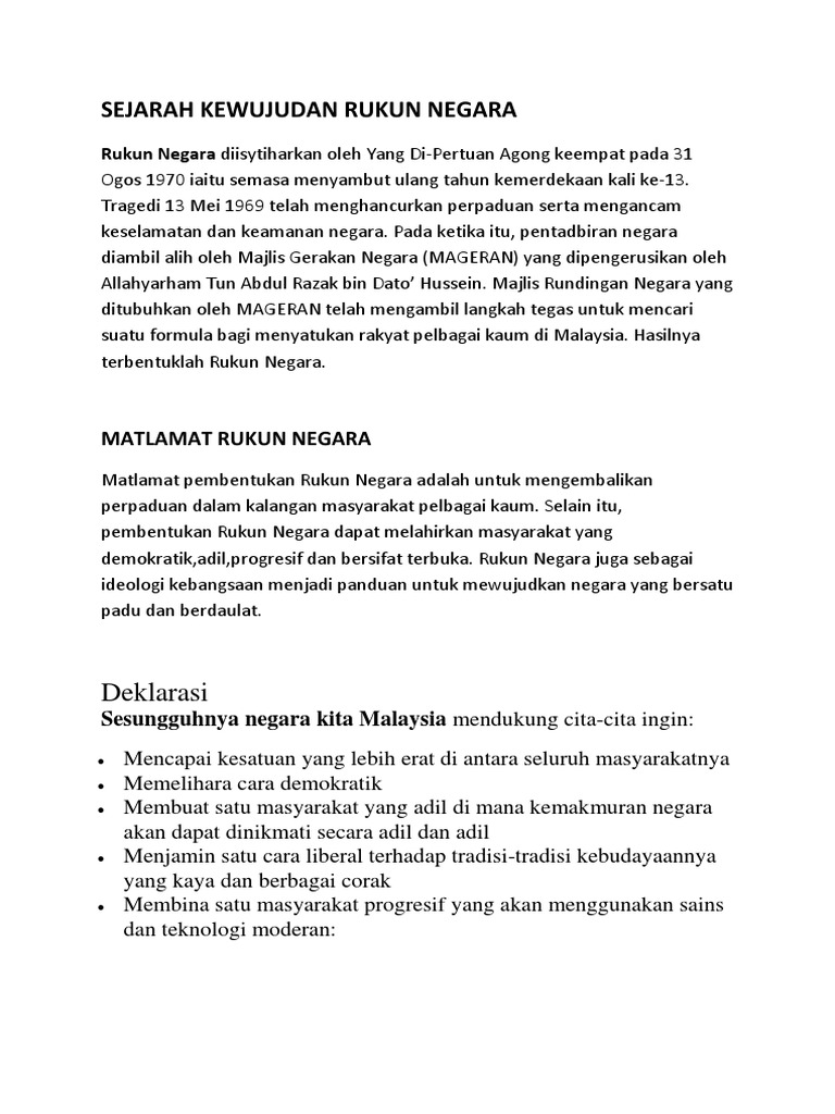 Sejarah Kewujudan Rukun Negara Pdf